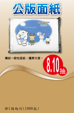 公版面紙批發製造,抽數有8抽/10抽,優惠價如上表格所示。